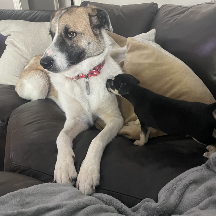 We foster failed with Edie, now Georgia. Our friends adopted her sister, Celine, now Remy.